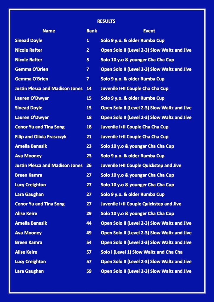 Our dancers sent in video entries across a range of Ballroom and Latin events. It was an interesting competition as they were up against a great set of international competitors across different age groups, including open events. Nevertheless, we are delighted with our results and proud of all our students for taking on the challenge!