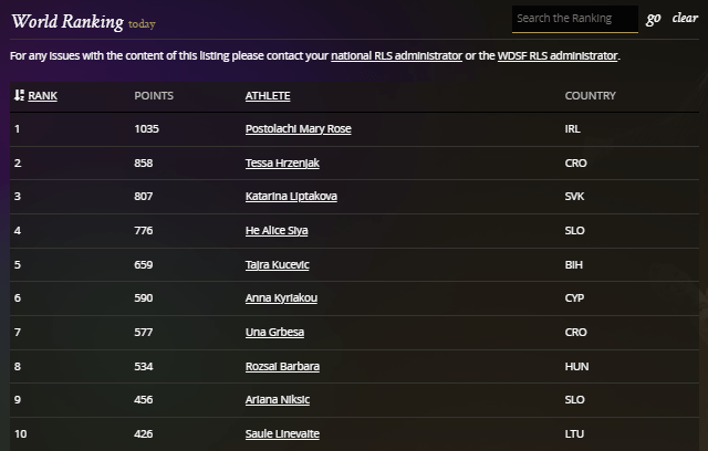 Nicole Rafter placed 3rd / 27 competitors and she currently ranks 4th in the World Ranking in Standard.