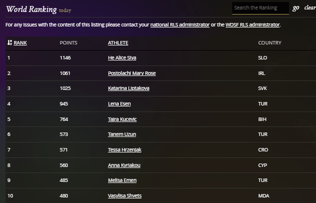 Nicole Rafter placed 17th / 52 competitors and she currently ranks 33rd in World Ranking in Latin.